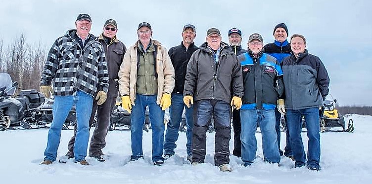 Nine Adventurous Men on snowmobiles took a trip that traced the original pipeline route from Ross River to "Mile Marker 120" (from Norman Wells)-